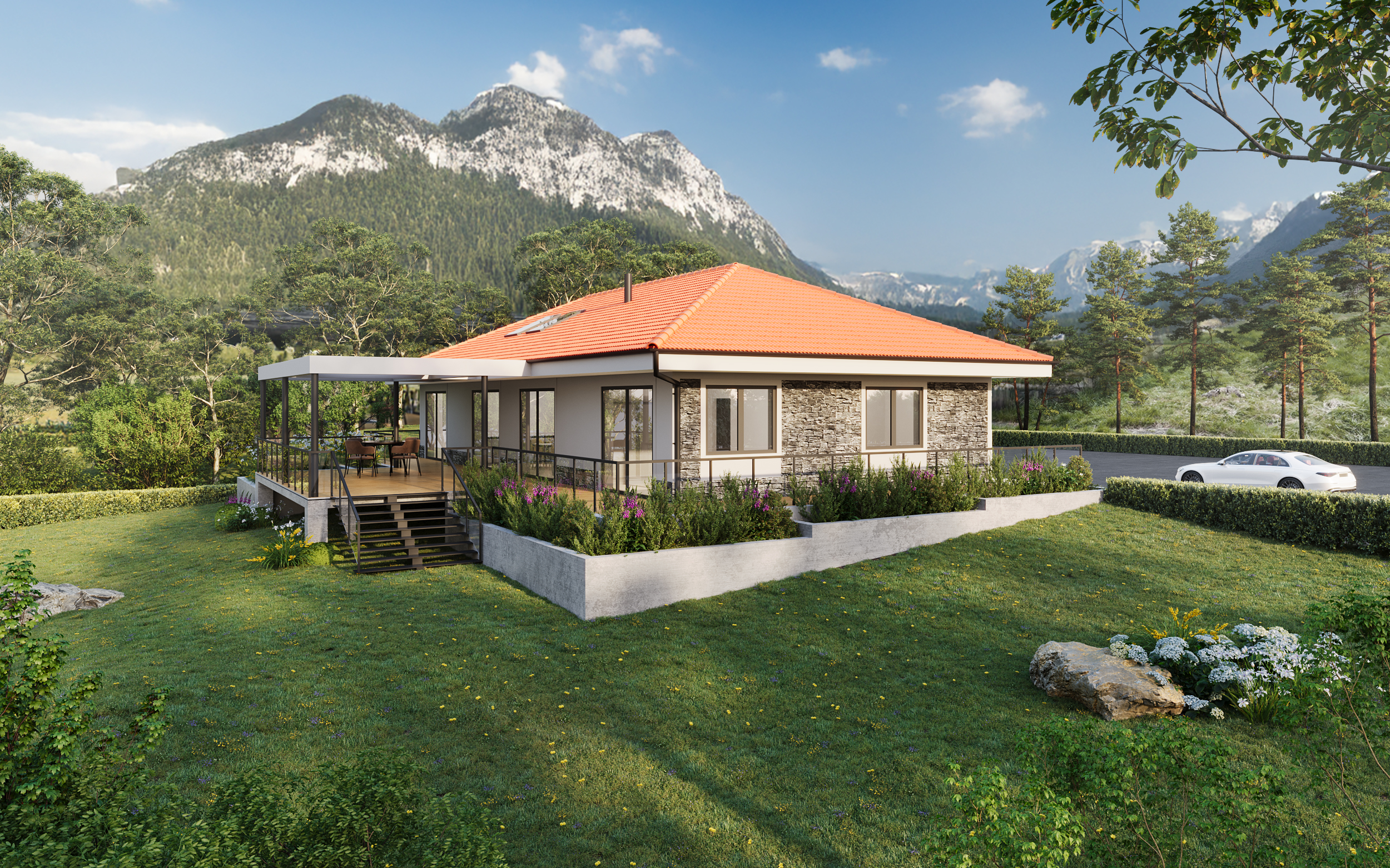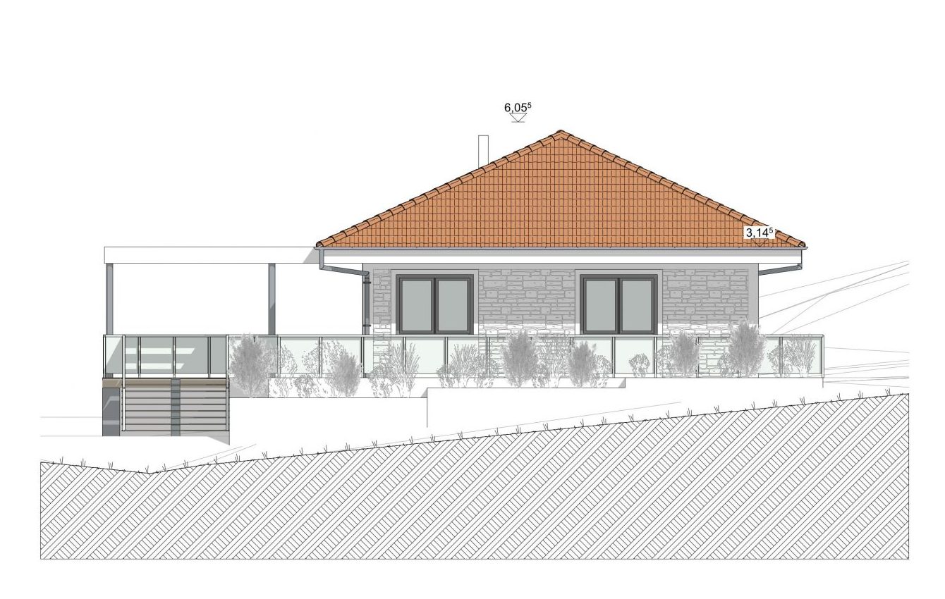 Diese eingeschossige Villa wurde in der erbebengeplagten Region Elbistan geplant und in 2025 errichtet. Durch die Hanglage richtet sich das Haus wunderbar in Richtung eines beschaulichen Tals aus. Die Terrasse bietet einen fantastischen Ausblick.